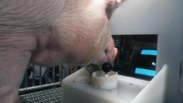 In der aktuellen Untersuchung sollten vier Schweine ihr Können am Joystick zeigen: zwei Yorkshire-Schweine namens Hamlet und Omelette sowie zwei Minischweine der Rasse Panepinto namens Ebony und Ivory. Sie trainierten zunächst zwei Wochen lang, den Joystick zu bewegen. Anschließend installierten die Forscher den Monitor und forderten die Tiere auf, das Bildschirmgeschehen zu verfolgen. Richteten sie den Blick auf den Monitor, erhielten sie eine Belohnung.