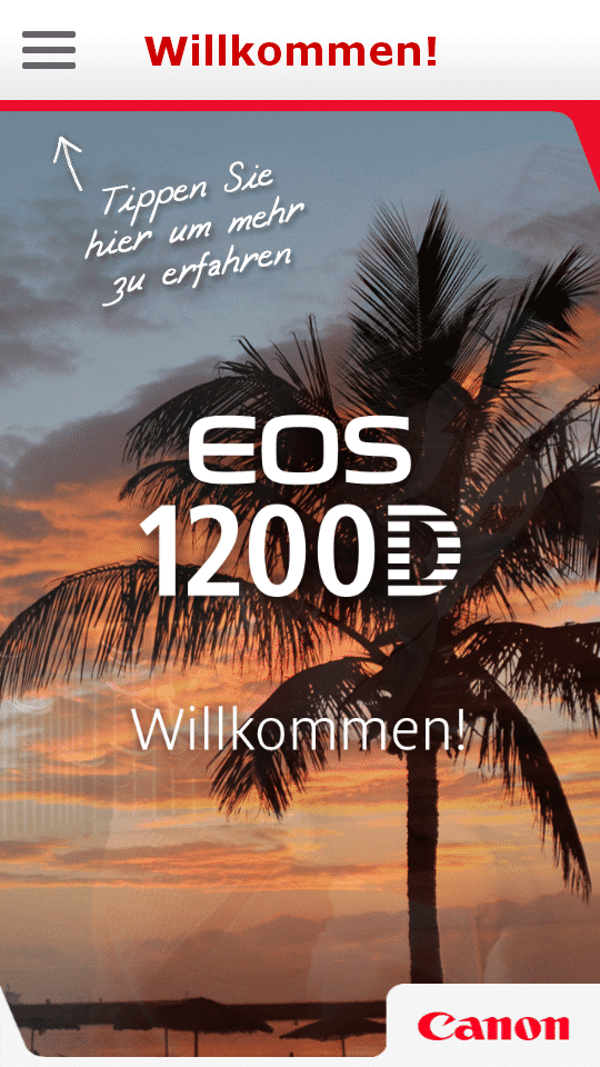 Obwohl die Spiegelreflexkamera selbst nicht mit WLAN ausgestattet ist, bietet Canon eine App dazu an. Mit der Anwendung "EOS Begleiter" sollen Fotografen die Funktionen und Tastenbelegungen der Kamera kennenlernen. Im Bereich "Entdecken" stehen dazu Foto-Lehrgänge zum Durchklicken bereit. Außerdem liefert die App Infos zu Belichtung oder Perspektive in bestimmten Aufnahmesituationen und hilft typische Fehler wie überbelichtete Fotos zu vermeiden.