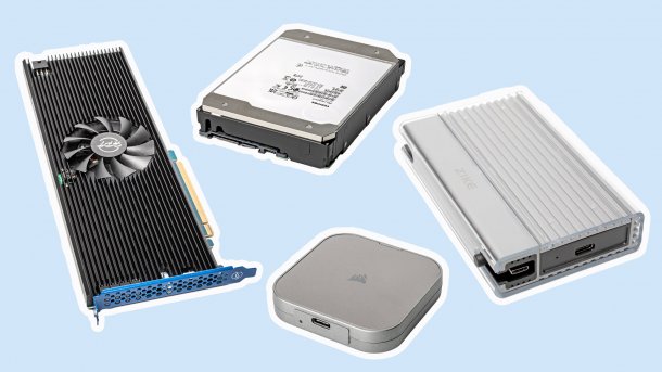 Wir haben eine schnelle Festplatte sowie eine kompakte USB4-SSD und zwei Gehäuse für PCIe-SSDs für unterschiedliche Einsatzklassen auf ihre Leistung geprüft.