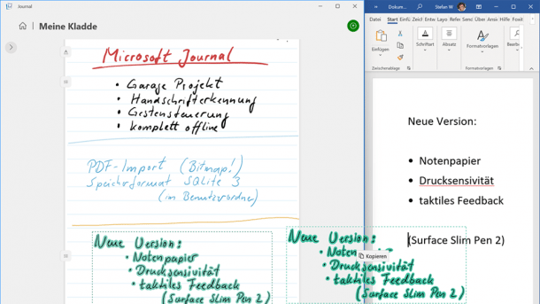 Vor rund 20 Jahren gab es schon einmal ein Notizprogramm namens „Windows Journal“, speziell entwickelt für die damalige Windows XP Tablet Edition. Mit dem hat das aktuelle Programm den Namen, die Handschrifterkennung und den Einsatzzweck gemein. Ansonsten ist es aber eine komplette Neuentwicklung aus der Microsoft Garage, einer Spielwiese für Microsoft-Programmierer.