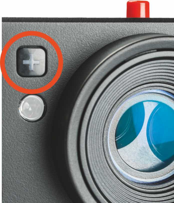 Die Taste mit dem Plus hat mehrere Funktionen. Sie zeigt an, ob Bluetooth aktiviert und die Kamera darüber mit der Smartphone-App verbunden ist. Außerdem kann der Fotograf auch den Akkuladestand prüfen, wenn er die Taste beim Einschalten der Kamera betätigt und dann auf die LED-Anzeige auf der Oberseite der Kamera sieht.