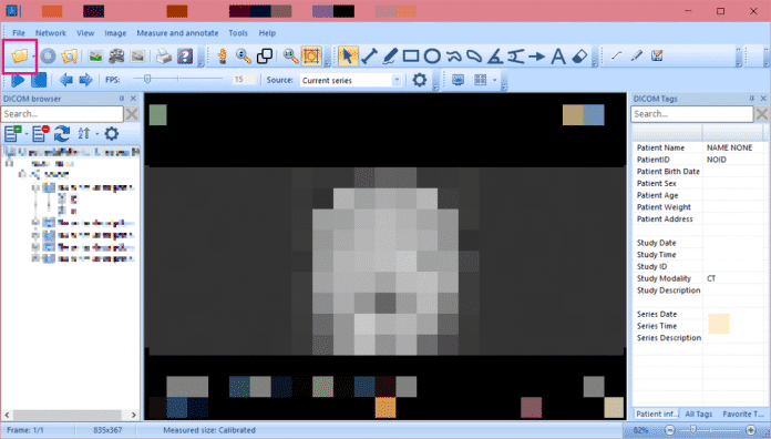 Wenn Sie den DICOM-Viewer nicht zum Laufen bringen können oder den medizinischen Bildern kein DICOM-Viewer beiliegt, ist das kostenlose Programm MicroDicom eine Option. Das Tool können Sie über folgenden Link herunterladen: https://www.microdicom.com/downloads.html. Damit können Sie das Röntgenbild oder ein anderes medizinisches Bild direkt vom Datenträger, über eine ZIP-Datei oder sogar durch Durchsuchen Ihrer Ordner nach den DICOM-Dateien öffnen. Sobald eine Datei in MicroDicom geöffnet ist, können Sie ihre Metadaten anzeigen, sie als JPG, TIF oder einen anderen gängigen Bilddateityp exportieren und vieles mehr. Öffnen Sie einfach das Programm und klicken Sie dort auf das Symbol mit dem Ordner oben links. Sie können dann die DCM-Datei auf Ihrem Computer auswählen und diese dann einfach öffnen.