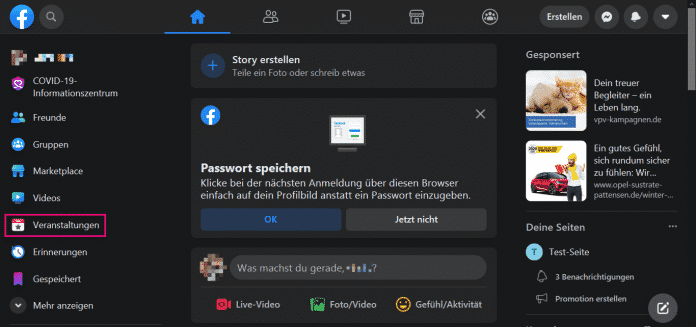 Ă–ffnen Sie Facebook in einem Browser auf Ihrem Computer und melden Sie sich dort mit Ihren Kontodaten an. Auf der Startseite klicken Sie nun links in der Liste auf den Eintrag "Veranstaltungen".