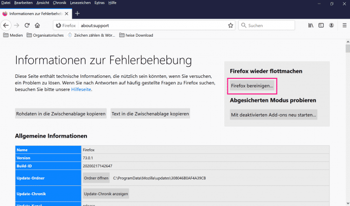Achtung: Beim Bereinigen werden alle Einstellungen, individuellen Anpassungen und Erweiterungen entfernt. Gespeicherte Lesezeichen und Passwörter werden allerdings nicht gelöscht. Wenn Sie nicht möchten, dass Ihre Einstellungen verloren gehen, können Sie diese in einem Backup sichern und anschließend wiederherstellen. Wir zeigen Ihnen hier, wie das funktioniert. Möglicherweise ist der Reinigungsprozess dann allerdings nicht so effektiv.