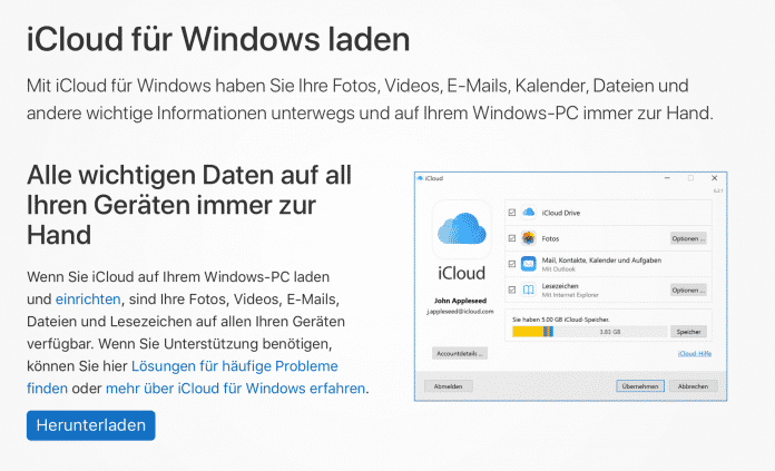 1. Laden Sie "iCloud für Windows" (https://support.apple.com/de-de/HT204283) herunter und starten Sie den PC nach der Installation neu.