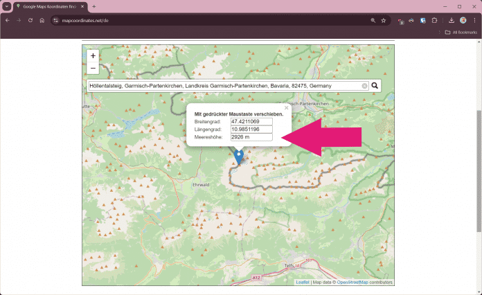 - Höhe von Koordiantionen mit Drittanbieter-Tool anzeigen