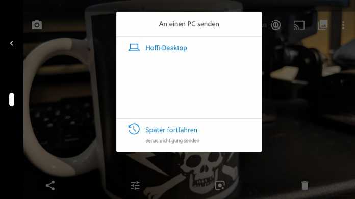 Sobald der Microsoft Launcher läuft, finden Sie im Menü "Teilen" von Android den neuen Link "Weiter auf dem PC". Damit können Sie künftig einfach Fotos, Links und Dokumente an Ihren Windows-PC senden. Gleichzeitig können Sie von Windows 10 aus Daten an das Smartphone übertragen. Auch Tethering, die gemeinsame Nutzung der Internetverbindung eines mobilen Geräts mit anderen angeschlossenen Computern, ist damit einfach möglich. Das funktioniert allerdings nur über die Teilen-Funktion der Windows-10-Apps aus dem Microsoft Store. "Klassische" Windows-Applikationen bieten das Feature nicht.
