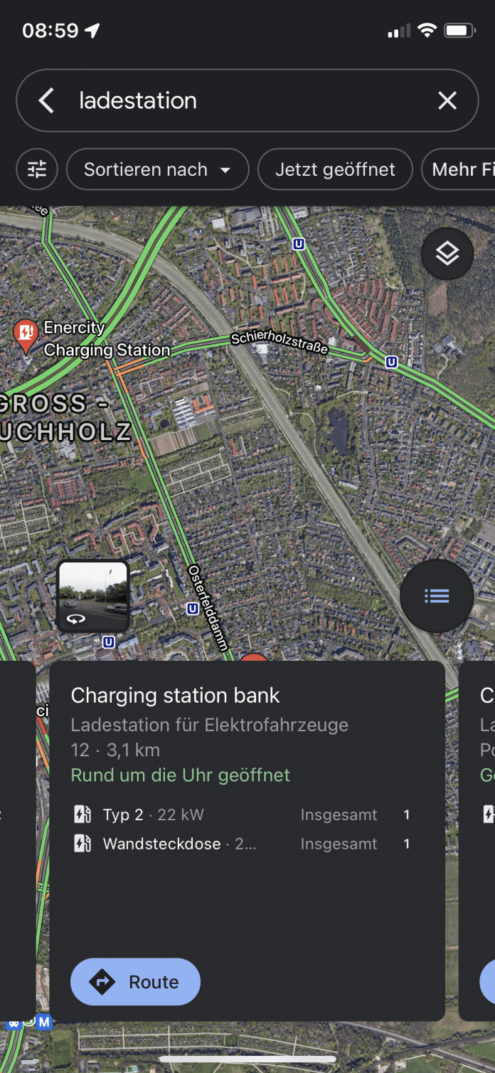 Auch in Google Maps können Sie Ladestationen für Ihr E-Fahrzeug finden. Wenn Sie nach dem Begriff "Ladestation" suchen, werden Ihnen die verfügbaren Stellen in Ihrem Umkreis angezeigt. Dazu Informationen wie Öffnungszeiten, verfügbare Steckertypen und Leistung sowie die aktuelle Auslastung der E-Tankstelle. Google-typisch haben Sie hier noch die Vorteile, dass Sie gleich Rezensionen zur jeweiligen Ladestation lesen können. Außerdem erhalten Sie Betreiber-Informationen wie Webseite und Rufnummer. Insgesamt bietet Google Maps den größten Umfang an Informationen.