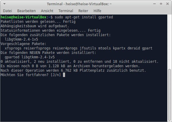 - Installieren Sie GParted mithilfe Ihres Paketmanagers. FĂĽr Debian-Systeme verwenden Sie zum Beispiel sudo apt-get install gparted
