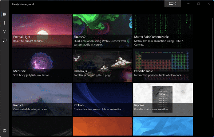 Sie können die Windows App Lively Wallpaper kostenlos im Microsoft Store erwerben. Diese App stellt Ihnen verschiedene animierte Hintergründe zur Verfügung, mit denen Sie Ihrem Desktop ein animiertes Erscheinungsbild verpassen können. Wenn Sie die Anwendung öffnen, werden Ihnen verschiedene Live Wallpaper angezeigt. Wählen Sie einfach eines aus und klicken Sie darauf, um es zu installieren. Und schon haben Sie einen animierten Hintergrund auf Ihrem Windows-PC. Und falls Ihnen die Auswahl der App nicht gefällt, können Sie über das Plus-Symbol links auch eigene GIFs und Videos hinzufügen, die Ihnen dann als Live-Hintergrund dienen.
