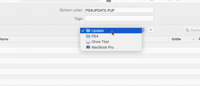 Da die neue Festplatte nun komplett leer ist, müssen Sie das Betriebssystem der PS4 neu installieren. Dazu benötigen Sie einen PC oder Mac mit Internetzugang und einen in FAT32 formatierten USB-Stick. Besuchen Sie die Downloadseite von Sony unter https://www.playstation.com/de-de/get-help/ps4-system-software/. Laden Sie hier über "Download Update" die aktuelle Version der PS4-Systemsoftware herunter. Erstellen Sie nun auf dem USB-Stick einen Ordner namens "PS4". In diesem erstellen Sie einen Unterordner mit dem Namen "Update", in den Sie nun die Datei "PS4UPDATE.PUP" kopieren.