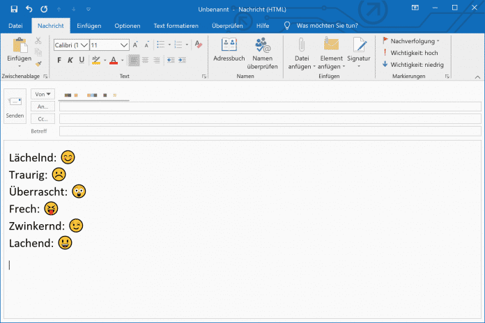 Smileys mit Tastenkombinationen in Outlook einfĂĽgen