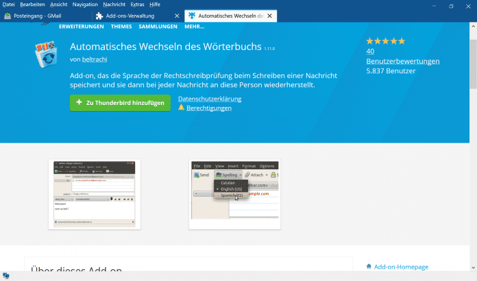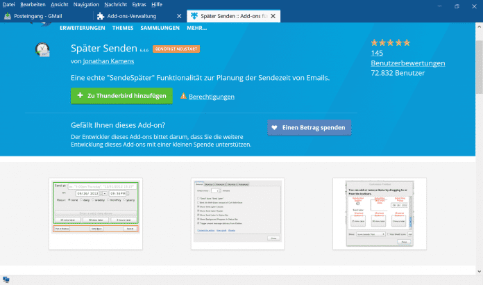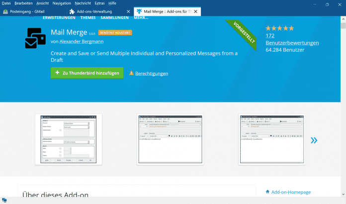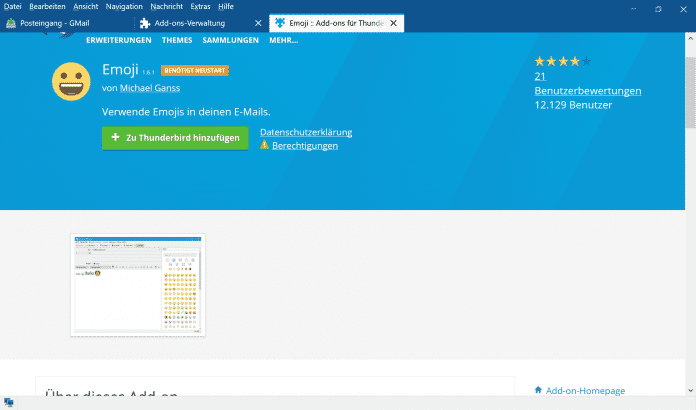 - Gehen Sie dann auf "Hinzufügen" und starten Sie, falls nötig, nach der Installation Thunderbird neu.