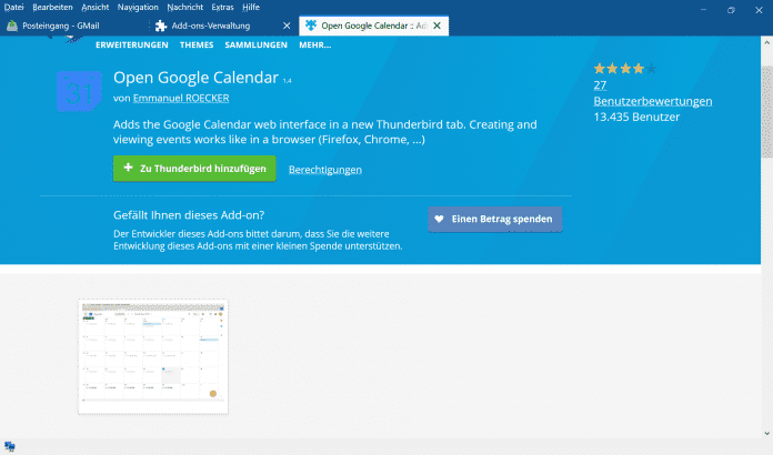 Die Erweiterung Open Google Calender fügt einen Shortcut zu Thunderbird hinzu, mit dem Sie den Google Calender öffnen können. Das Erstellen und Anzeigen von Ereignissen wird so integriert und geht schneller denn je.