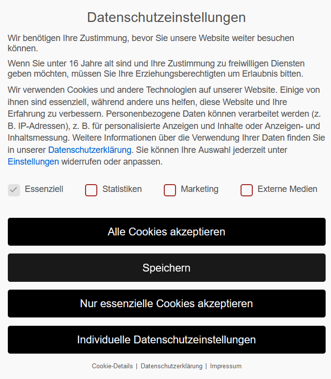 Cookies sind kleine Textdateien, die von Websites auf Ihrem Computer oder Gerät gespeichert werden, wenn Sie diese besuchen. Sie dienen dazu, Informationen über Ihre Aktivitäten und Einstellungen auf der Website zu speichern. Rufen Sie eine Webseite später erneut auf, sieht diese genauso aus, wie die Cookies es gespeichert haben. Cookies werden von Websites verwendet, um die Benutzererfahrung zu verbessern, statistische Informationen zu sammeln, Werbung zu personalisieren und andere Zwecke zu erfüllen. Es gibt verschiedene Arten von Cookies, die für verschiedene Funktionen zuständig sind. Manche von Ihnen sind technisch notwendig, andere nicht.