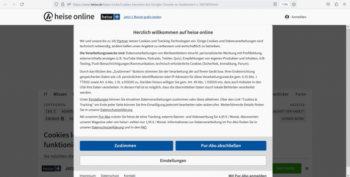 Besuchen Sie eine Webseite zum ersten Mal, werden Sie in der Regel über die Nutzung von Cookies aufgeklärt. Sie können der Nutzung dann zustimmen, sie ablehnen oder nur technisch notwendigen Cookies zustimmen. Manchmal können Sie technisch notwendigen Cookies nur zustimmen und die Drittanbieter-Cookies ablehnen, wenn Sie auf "individuelle Einstellungen" klicken.