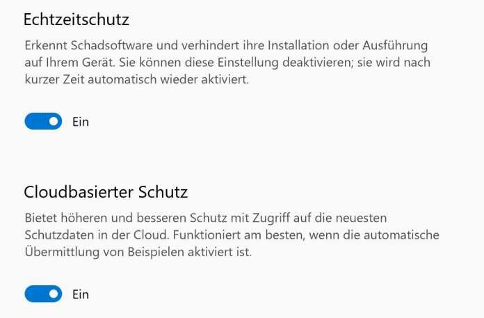 - Klicken Sie hier auf „Viren und Bedrohungsschutz“ und danach auf „Einstellungen für Viren- und Bedrohungsschutz.“ Hier sollten die Schalter „Echtzeitschutz“ und „Cloudbasierter Schutz“ aktiv sein. Dadurch sind Sie immer vor Viren und anderen Schädlingen geschützt – ohne zusätzlichen Virenscanner!