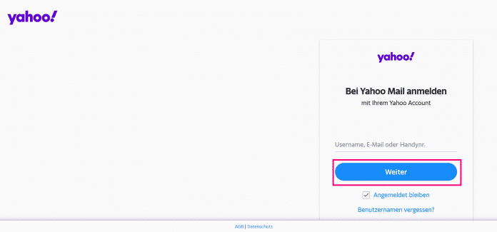 - Ă–ffnen Sie in einem Webbrowser Ihrer Wahl die Login-Seite von Yahoo und geben Sie Ihre E-Mail-Adresse ein. Klicken Sie auf "Weiter".