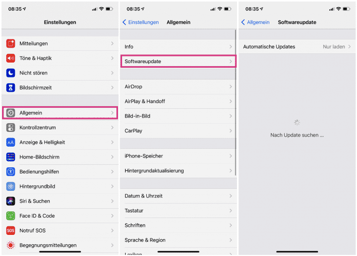 Öffnen Sie dazu die Einstellungen Ihres iPhones, tippen Sie auf „Allgemein“ > „Softwareupdate“ und installieren Sie ggf. die neueste iOS-Update.