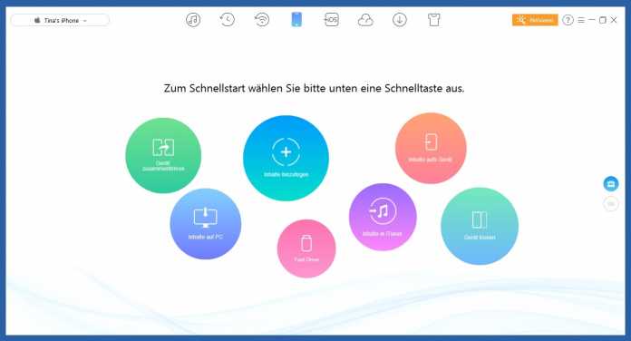AnyTrans kommt iTunes optisch sehr nahe, funktioniert aber ohne Verknüpfung mit dem Apple-Programm. Es bietet einen großen Umfang an Funktionen zur Medienverwaltung, aber z.B. zusätzlich auch die Synchronisation mit iCloud. Dieses Programm ist im Vergleich zu den beiden vorherigen Programmen auch für Mac erhältlich. Leider ist die vollumfängliche Nutzung nur durch den Erwerb der Vollversion (39,99€) möglich.